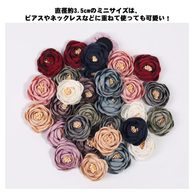 | 素敵なアイデアで見違えるほどオシャレに女子力満載のフラワーモチーフです。 直径約3.5cmのミニサイズは、ピアスやネックレスなどに重ねて使っても可愛い! ヘアピンやパッチンピンのパーツと合わせてカワイイヘアアクセサリーも作れちゃう! 軽量ですのでフックピンなどでドアの上や壁面に付けたり、コンソールに置いても素敵です。 造花なので枯らしてしまう心配がなく、お部屋の中に優しい温もりを感じる雰囲気です。 | |