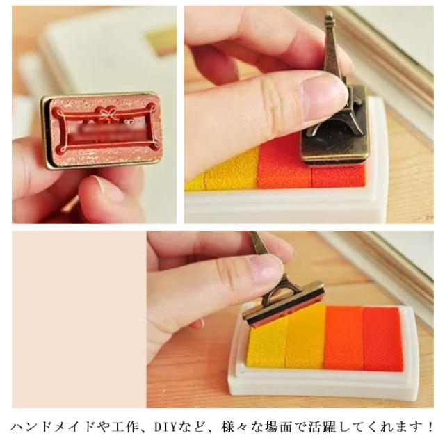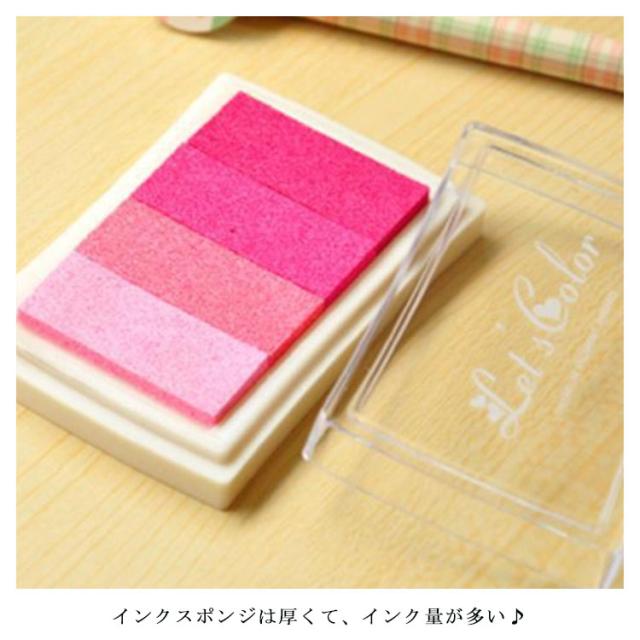 | グラデーションカラーのスタンプ台。 インクスポンジは厚くて、インク量が多い♪ 布以外にも紙やコーティングの施されていない木など、吸収性のある表面に幅広くご使用いただけます。 布製小物へのデコレーションアレンジや、お子さまのお名前スタンプにも♪ ハンドメイドや工作、DIYなど、様々な場面で活躍してくれます! 6色あります。好きな色をお選びいただけます。 | |