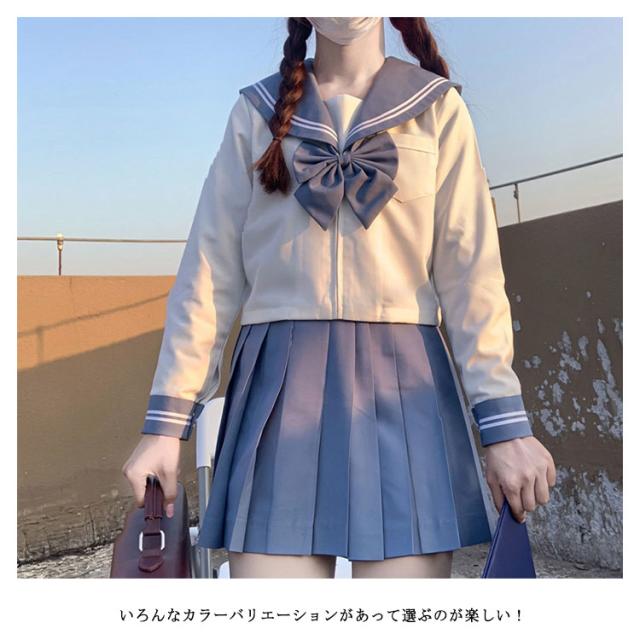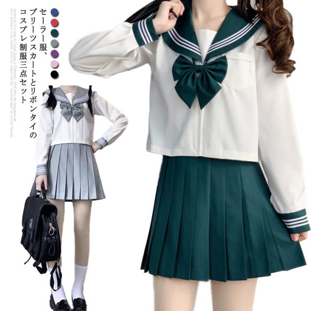 セーラー服 女子制服 JK制服 コスプレ コスチューム 高校生 3点セット リボンタイ セーラー服 ショートスカート レディース 衣装 仮装 制服 学生服 長袖 前開きジッパー 上下セット 女子制服 JK制服 ハロウィン 学園祭 大人 送料無料