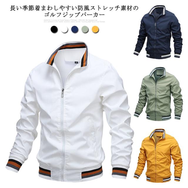 ゴルフジャケット メンズ ゴルフウェア パーカー ジャケット 撥水加工 アウター ブルゾン スタンドネック ジップアップ スポーツウェア キャンプ アウトドア マンパーブルゾン ジャンパー カジュアル 防寒 防風 撥水