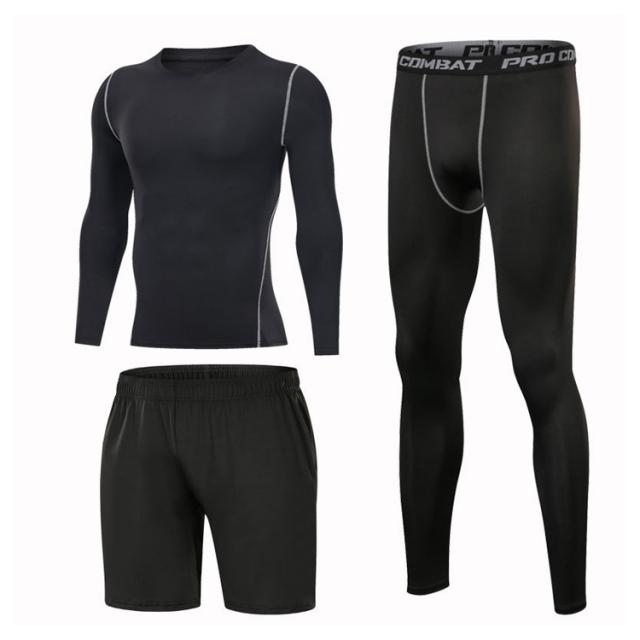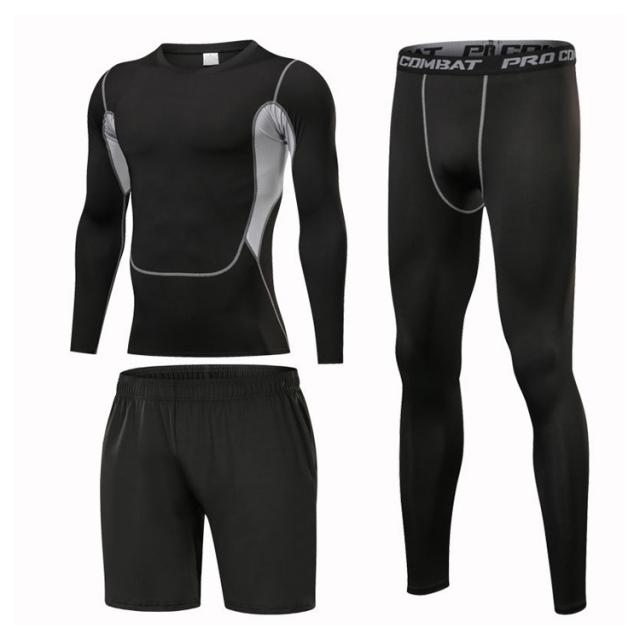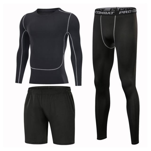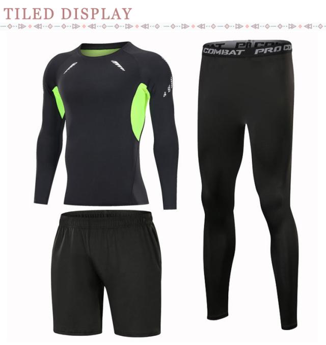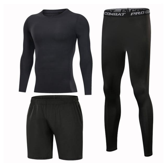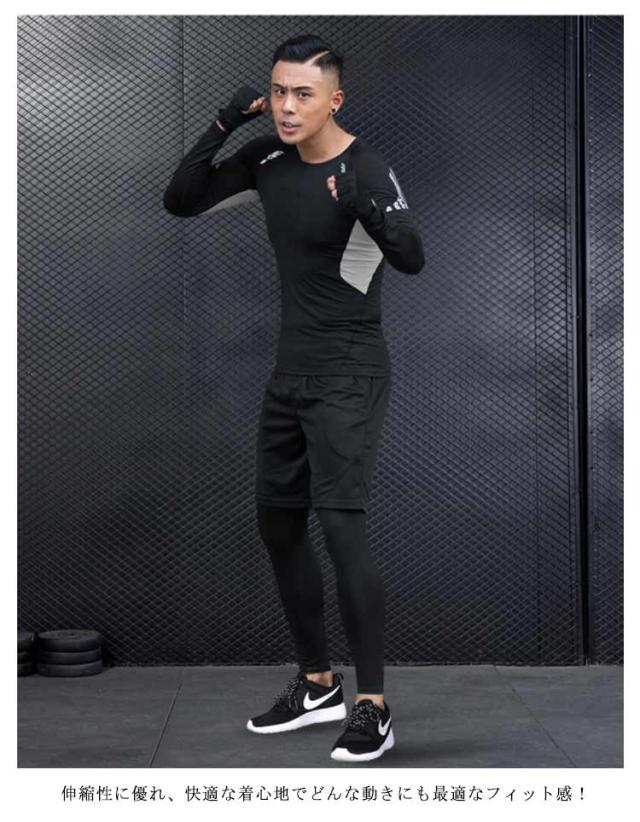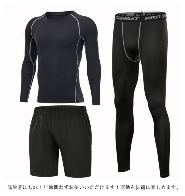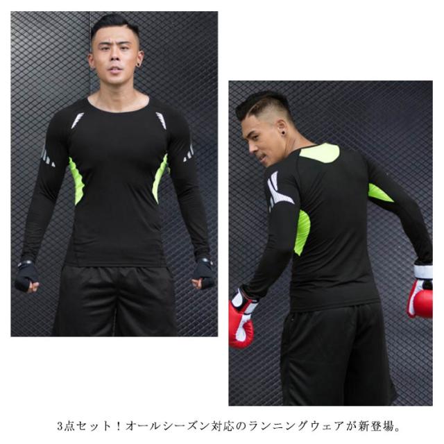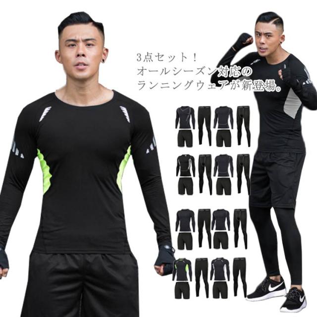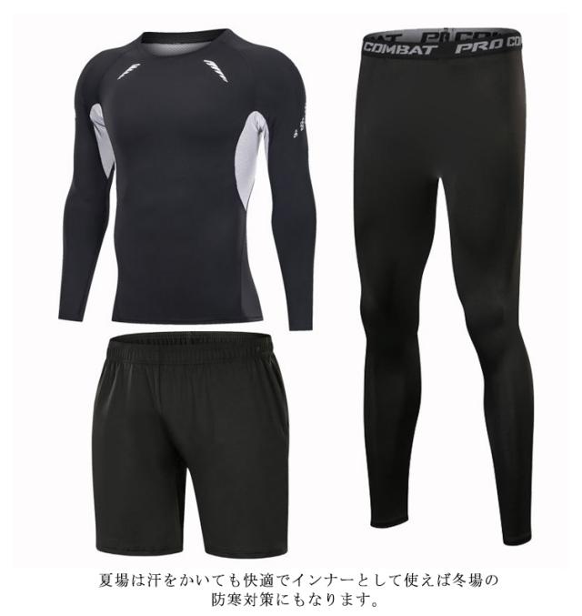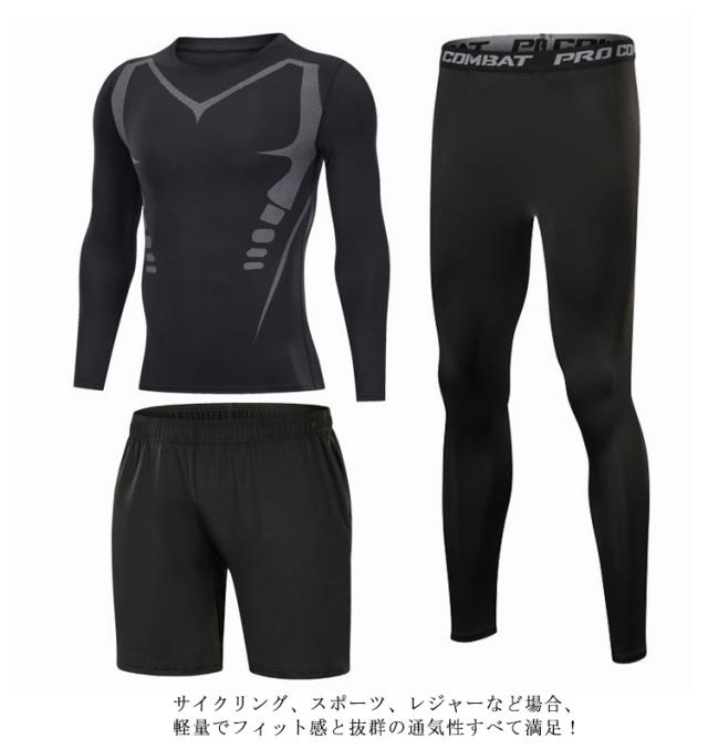 コンプレッションウェア メンズ 上下セット トレーニングウェア 3点セット 通気性 スポーツウェア ランニング 長袖 ハーフパンツ タイツ 吸汗速乾 ストレッチ