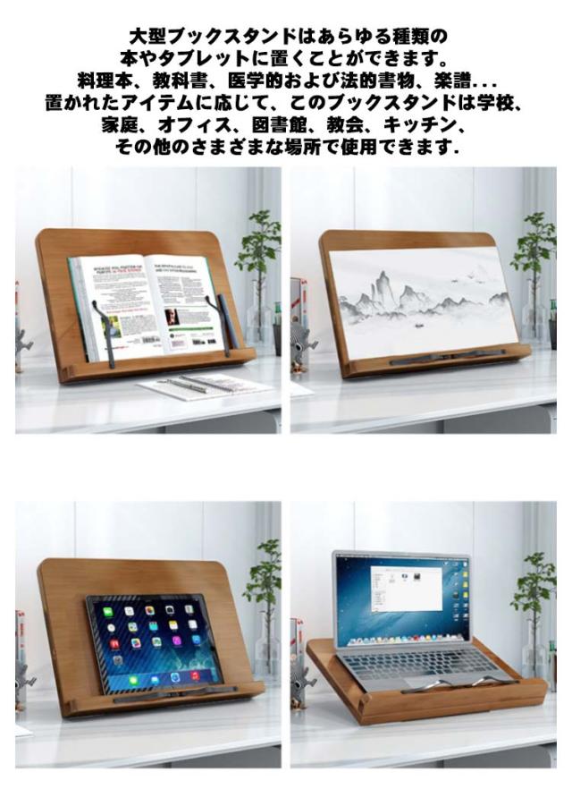 | 【多機能スタンド】特別の楠竹製ブックスタンドは異臭がなく、丈夫で耐久性があり、変形しにくく、環境にやさしく健康的です。大型ブックスタンド はあらゆる種類の本やタブレットに置くことができます。料理本、教科書、医学的および法的書物、楽譜...置かれたアイテムに応じて、このブックスタンドは学校、家庭、オフィス、図書館、教会、キッチン、その他のさまざまな場所で使用できます. 【姿勢のやり直す】人間工学に基づいた優れたデザイン、座り方を矯正し、視力を守りる、良い習慣を育ってるために設計した。さまざまな調整可能な角度により、色んなデスクトップの高さに適応できます。 【高さ調整可 角度調整可】この大型のブックスタンドはさまざまのお客さまによって、上部ブラケットは220°無限に調整可能で、下部ブラケットは6段階(75°、66°、57°、48°、39°、30°)で調整できます。 【改良型ブックホルダー】ローラー式のページクリップにより、ページめくりに影響を与えることなく、本をしっかりと固定できます。また、底のバッフルとクリップが可動式なので、このパーツが不要な場合でも、古いブックスタンドのようにアームの置きを妨げることはありません。 【インストールなし、折りたたみ可能】完成品出荷、開ければ使用可能。折りたたみ可能、コンパクトで、スペースを取らず、自宅、学校、オフィス等の場所で使用可能。 | |