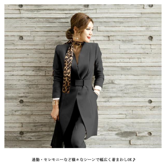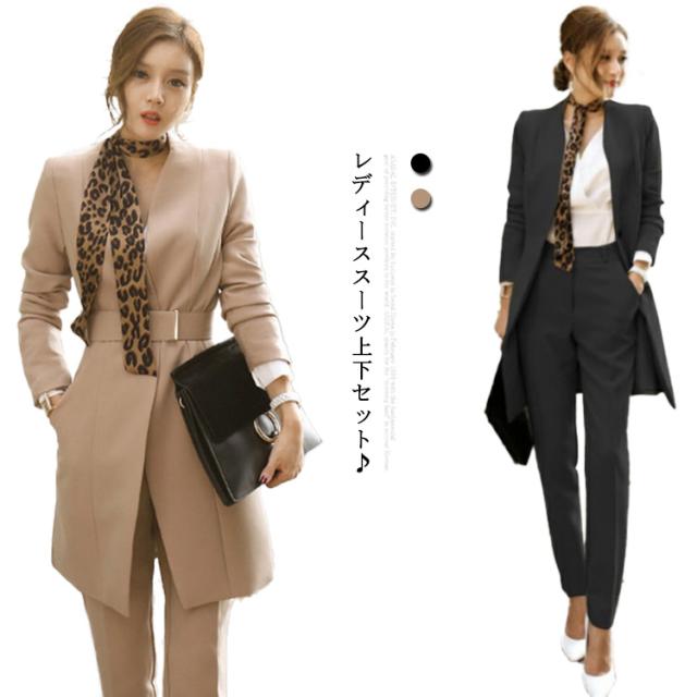 スーツ レディース セットアップ 卒園式 入学式 春物 ジャケット パンツ2点セット 上下セット トップス ボトムス 結婚式 セレモニースーツ リクルートスーツ 事務服 オフィス OL 通勤 春秋冬 ビジネス ベルト付き スカーフ 大きいサイズ