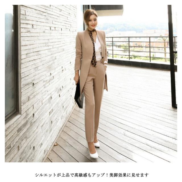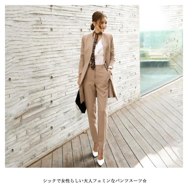 | レディーススーツ上下セット♪ シックで女性らしい大人フェミンなパンツスーツ☆ 上品な生地を使用し、長時間着てもシワにならない、綺麗な質感を保持します。 大人のトレントスタイルが気になる体型を綺麗にカバーしてくれます。 シルエットが上品で高級感もアップ!美脚効果に見せます。 通勤・セレモニーなど様々なシーンで幅広く着まわしOK♪ | |