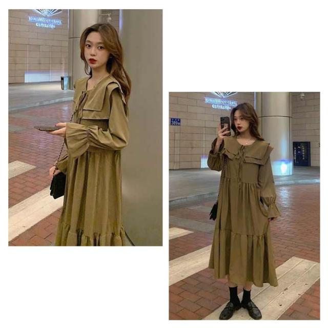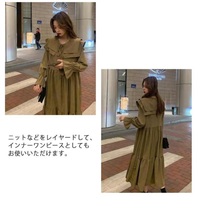 | トレンド感が溢れるロング丈ワンピース。 セーラー襟が可愛くてポイントになる。 ゆったりとしてリラックスに着こなせるスタイリング。 ニットなどをレイヤードして、インナーワンピースとしてもお使いいただけます。 | |