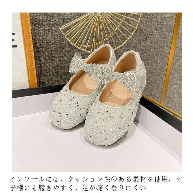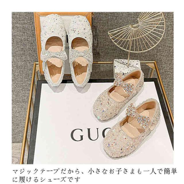| キラキラの素材で作られた可愛さUPシューズです インソールには、クッション性のある素材を使用,お子様にも履きやすく、足が痛くなりにくい マジックテープだから、小さなお子さまも一人で簡単に履けるシューズです 靴底はしっかり滑り止めが効いていて、しかもしなやかで歩きすい ドレスコード、結婚式、発表会、入学、入園など正装に必要な場で良きアイテム | |