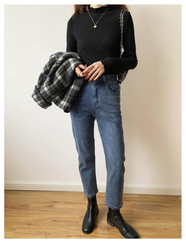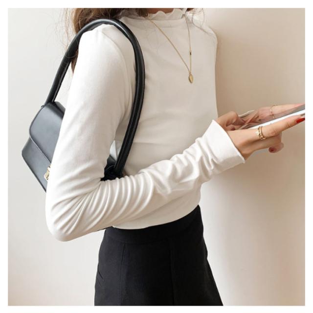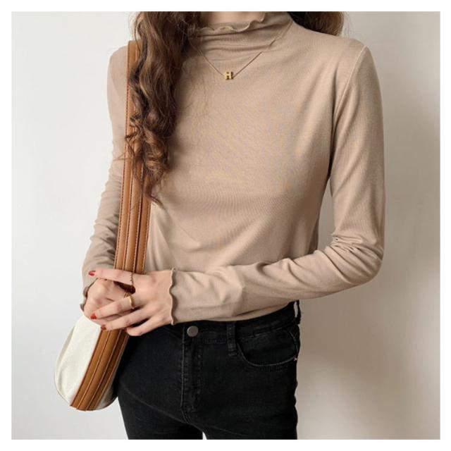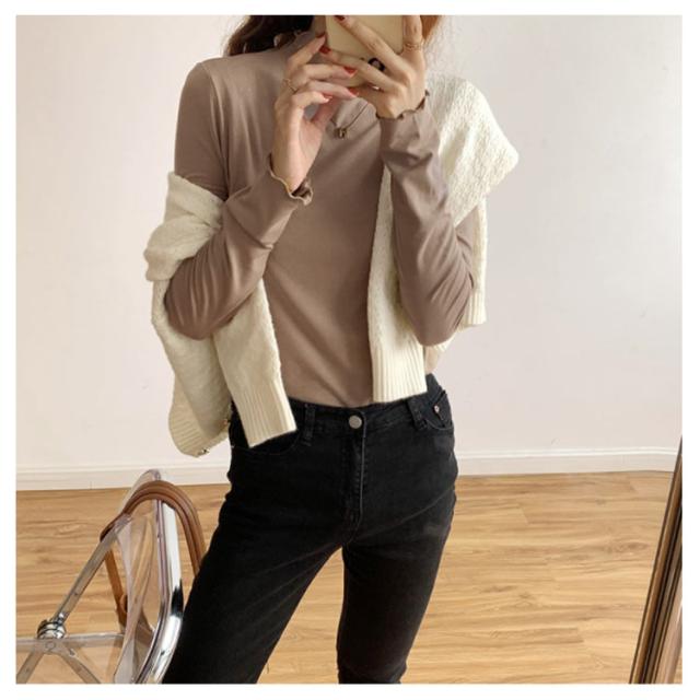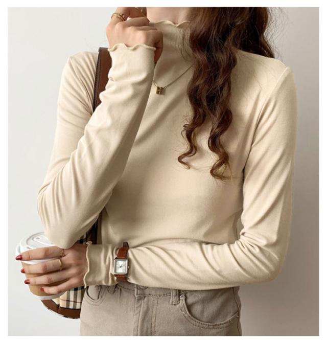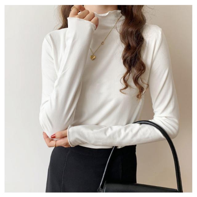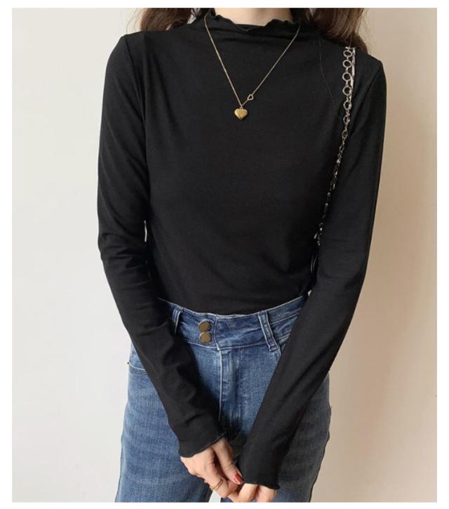 トップス Tシャツ カットソー 長袖 ハイネック タートルネック レディース フリル インナー 薄手 重ね着 春秋 お洒落 レイヤード風 キレイめ