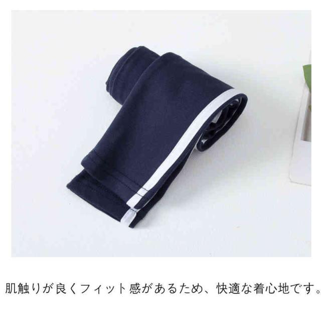 | スポーティーなラインレギンスです。 1枚でトレンド感のあるスポーツMIXスタイルがすぐに完成。 ボトムスやワンピースと合わせるのはもちろん、BIGシルエットのトップスを合わせたこなれ感のあるコーデもおすすめです。 サイドにラインが入っているので脚長効果も期待できます。 さらっと軽やかな薄手コットン素材。 肌触りが良くフィット感があるため、快適な着心地です。 ウェストゴムで脱ぎ着も楽々です。 室内着や日常使いはもちろん、ダンスやスポーツの習い事や、修学旅行などのパジャマやジャージとしても最適。 | |