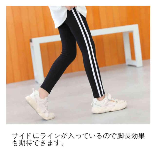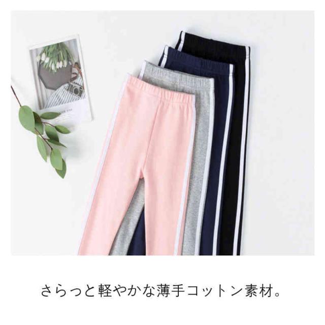 ラインレギンス 子供服 キッズ パンツ レギンス ライン 長ズボン ラインパンツ 10分丈 サイドライン 弾性 ライン入り 伸縮性 ロングパンツ 綿 ウェストゴム 女の子 ボトムス ルームウェア シンプル 春 夏 秋 冬 通学 小学生 スクール ジュニア スポーティ 運動着