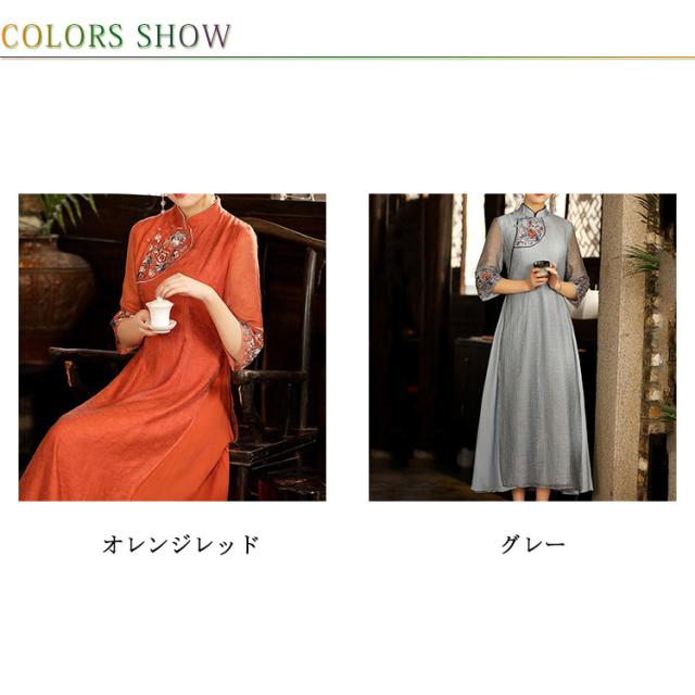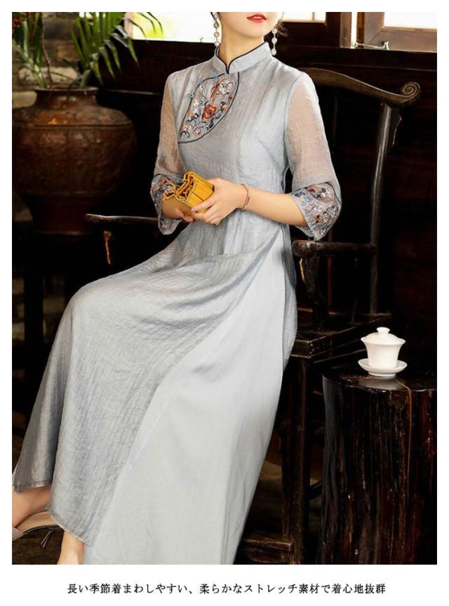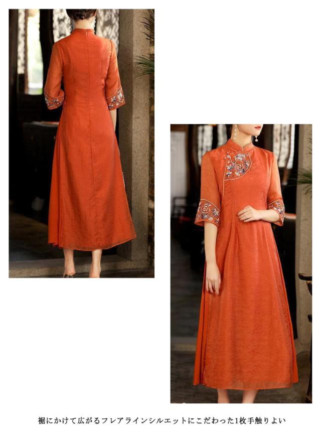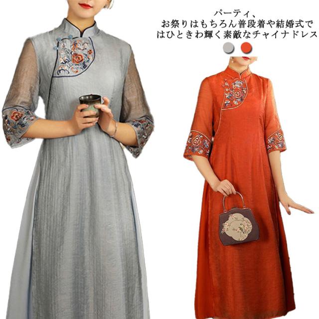 刺繍 チャイナドレス ワンピース 礼服 スーツワンピ ワンピーススーツ ワンピース フォーマル ロングワンピース 五分袖 シースルー 花柄刺? スタンドカラー Aライン 可愛い 演奏会 発表会 結婚式 コスプレ ドレス 送料無料
