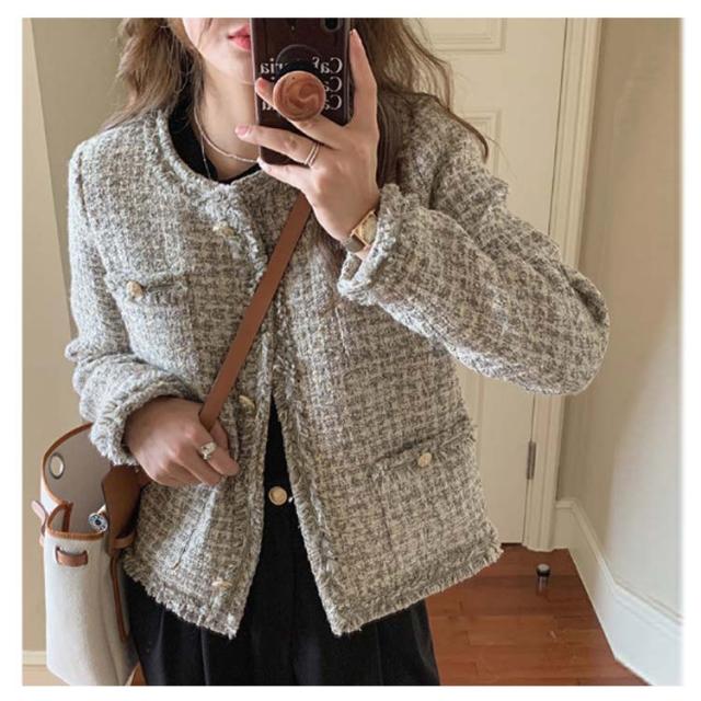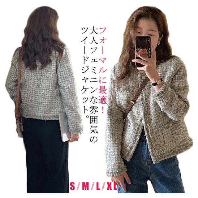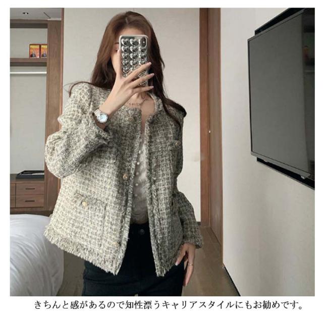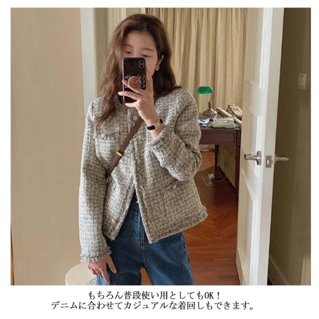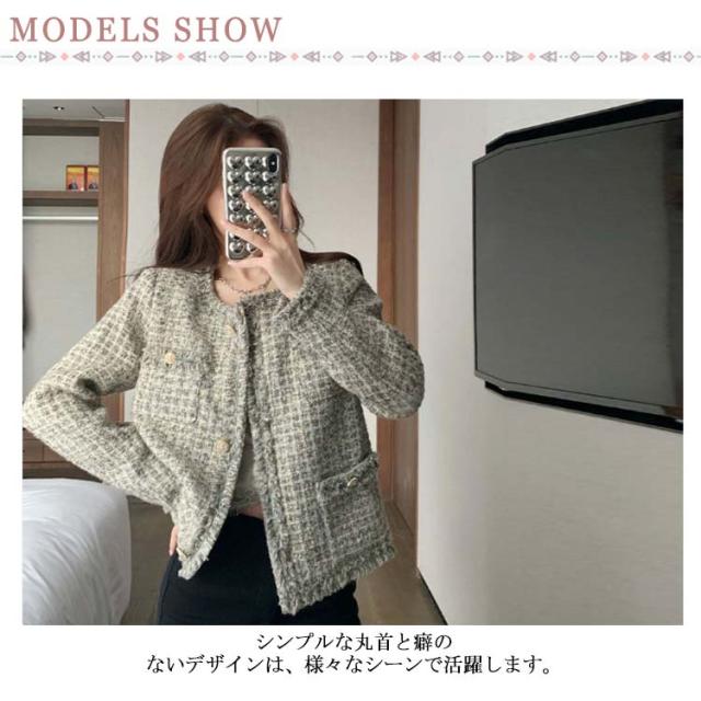 ジャケット レディース 春秋 ツイード フォーマル カジュアル 丸首 入学式 卒業式 入園式 結婚式 お宮参り 七五三 授業参観 学校行事 20代 30代 40代