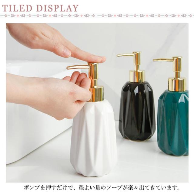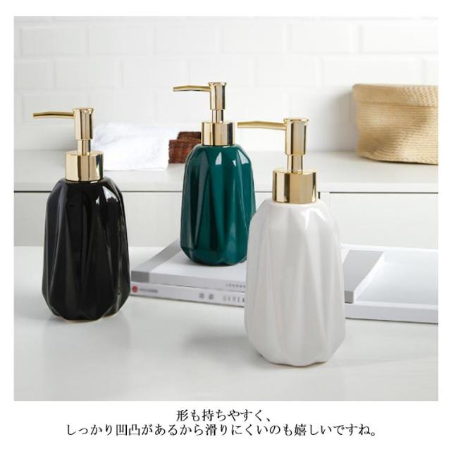 ソープボトル ソープディスペンサー 詰め替えボトル 陶器 ハンドソープ シャンプー 洗剤用 お手入れ簡単 お洒落 キッチン 浴室用 ホテル 自宅用 300ml