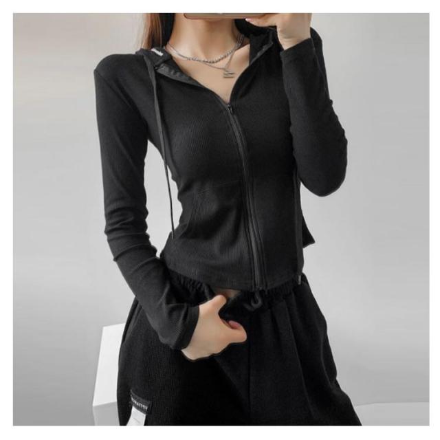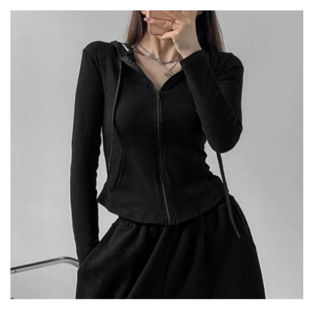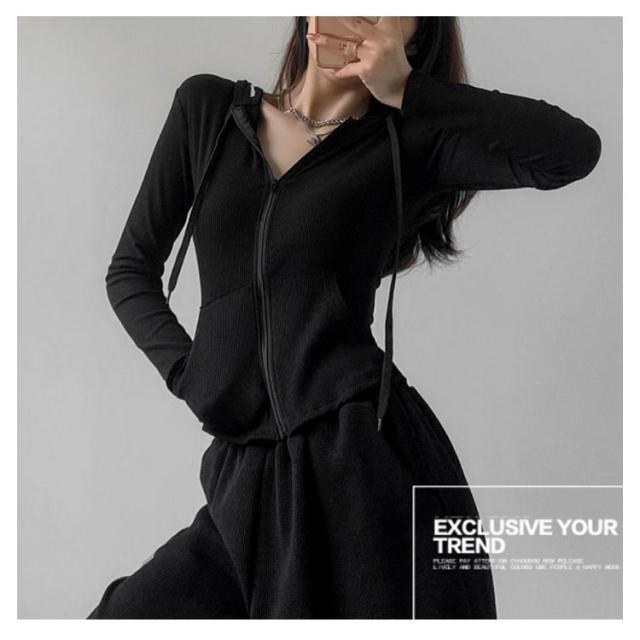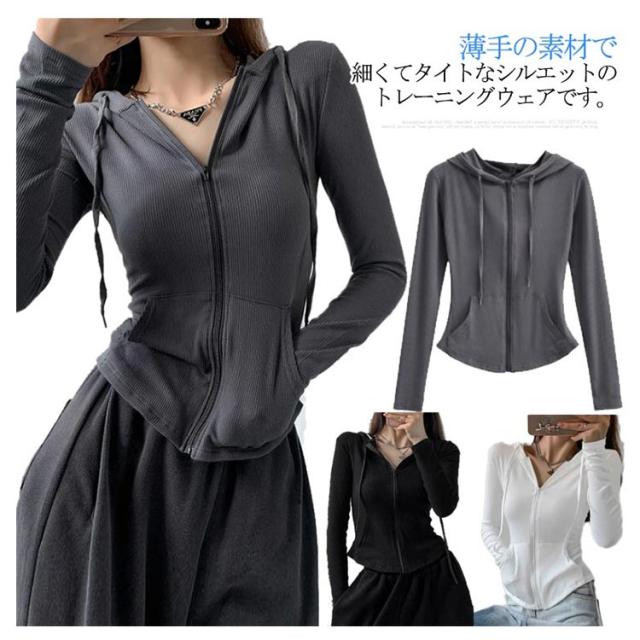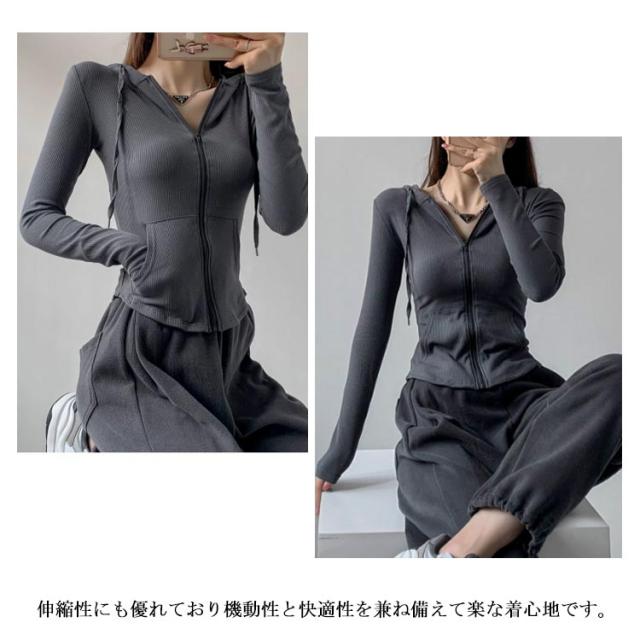 ジャージ レディース ジップアップ フード付き パーカー 長袖 トップス 薄手 部屋着 ジャージジャケット スウェット スポーツ カジュアル スリム 着痩せ ルームウェア おしゃれ シンプル 春 秋冬 グレー 黒 ショート丈 送料無料