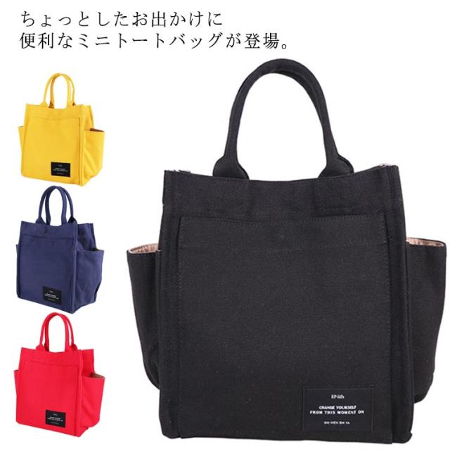 ミニトートバッグ レディース トートバッグ キャンバス地 ランチバッグ ママバッグ マザーズバッグ 大容量 ママトート 厚手 シンプル 無地 軽量 使いやすい おしゃれ 通勤 通学 アウトドア お弁当 ペットボトル カジュアル 送料無料
