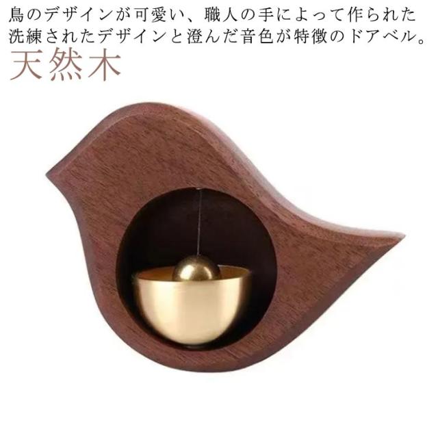 ドアベル ドアチャイム 玄関 木製 ドアベル 鐘 チャイム 呼び鈴 鳥 ウッド 天然木 真鍮 ドア鈴 おしゃれ ドア 扉 引き戸 開き戸 マグネット 磁石 粘着 優しい音 冷蔵庫 店舗 ホーム ナチュラル インテリア 雑貨 引っ越し祝い 新築祝い 贈り物 ギフト プレゼント ブラウン