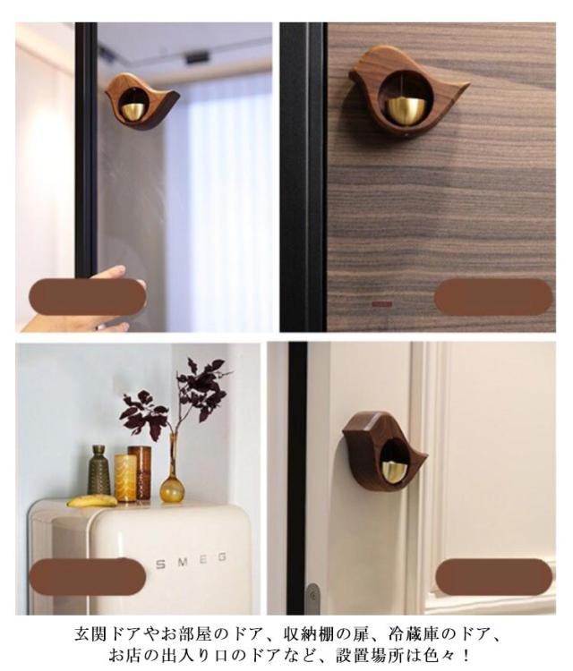 | 鳥のデザインが可愛い、職人の手によって作られた洗練されたデザインと澄んだ音色が特徴のドアベル。 扉を開け閉めするたびに優しい音が響きます。耳に心地よい音で来る人を出迎える。 高級感のあるウッド素材とレトロな真鍮素材のべルを組み合わせたシンプルなデザインで、どんなドアやお部屋にもよく似合います。 マグネット式だから取り付け簡単!木製などのドアは付属の両面テープで取り付けます。 玄関ドアやお部屋のドア、収納棚の扉、冷蔵庫のドア、お店の出入り口のドアなど、設置場所は色々! シンプルで合わせやすいデザインなのでプレゼントとしても最適。 | |