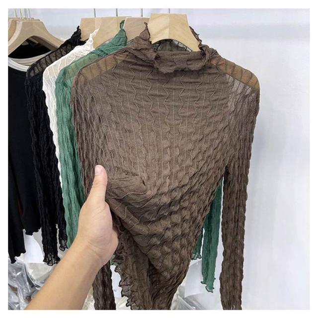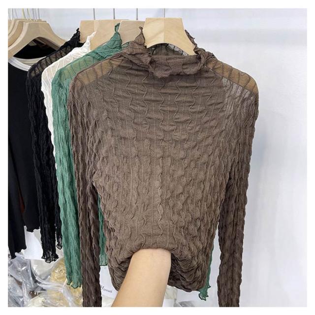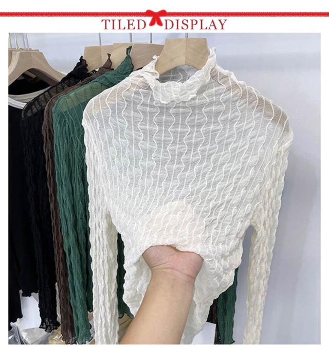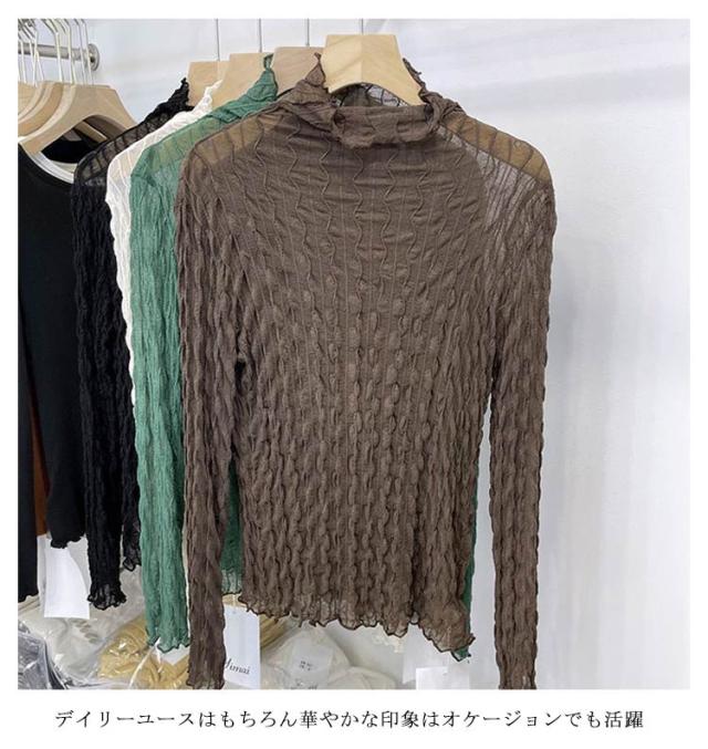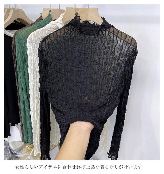 送料無料 レースブラウス レディース レーストップス レースインナー 長袖 タートルネック 透け感 レイヤード コーデ 重ね着 薄手 チュールレース インナー フォーマル 大人 おしゃれ かわいい セクシー