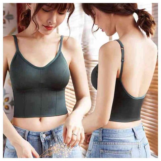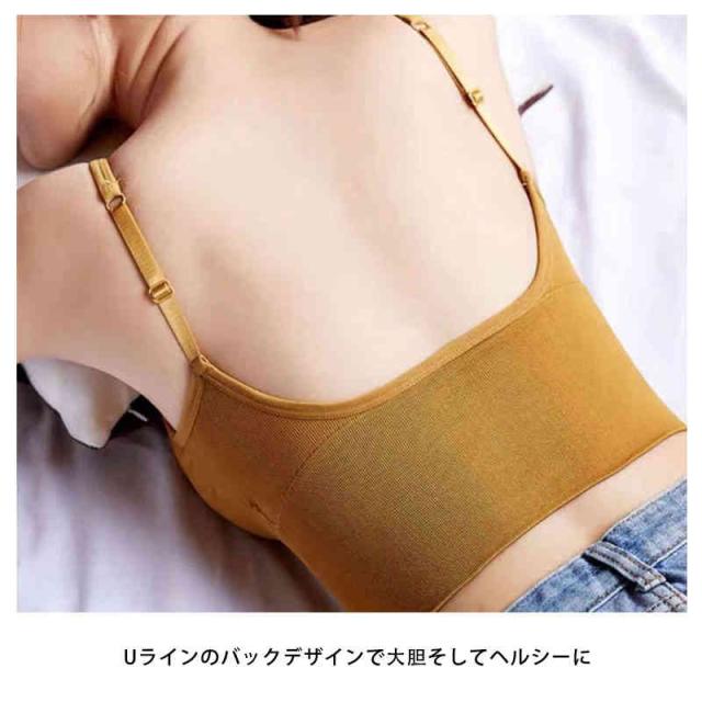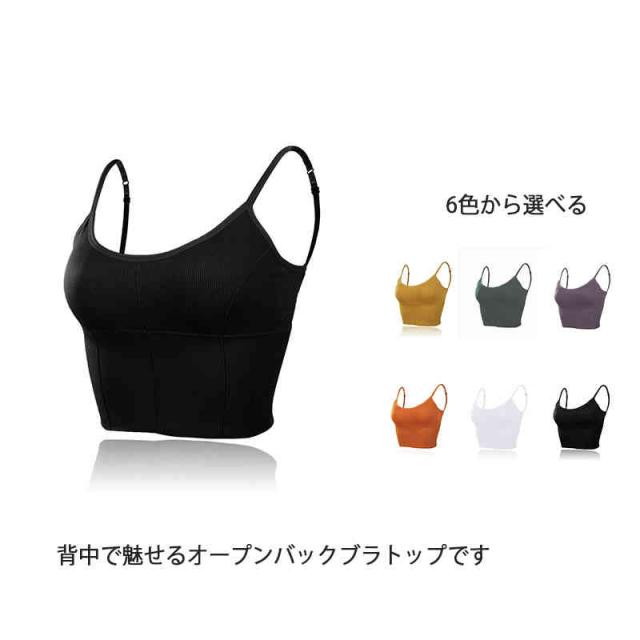 ブラトップ キャミソール レディース オープンバック バックオープンブラトップ ノーワイヤー 肩ひも調節 背中開き カップ付き パット入り インナー 美胸 背中見せ リブ Vネック タンクトップ ルームウェア 下着 春夏 おうち時間 Uバック 全6色