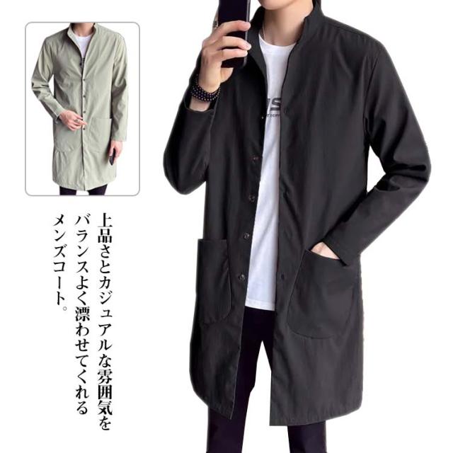 メンズ ライトアウター ジャケット ハイネック 長袖 メンズ ミリタリージャケット アウター チェスターコート ロングコート ポケット付き スリム 細身 通勤 通学 防寒 カジュアル ざっくり メンズファッション