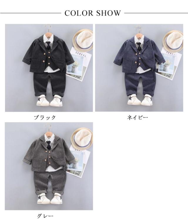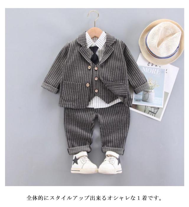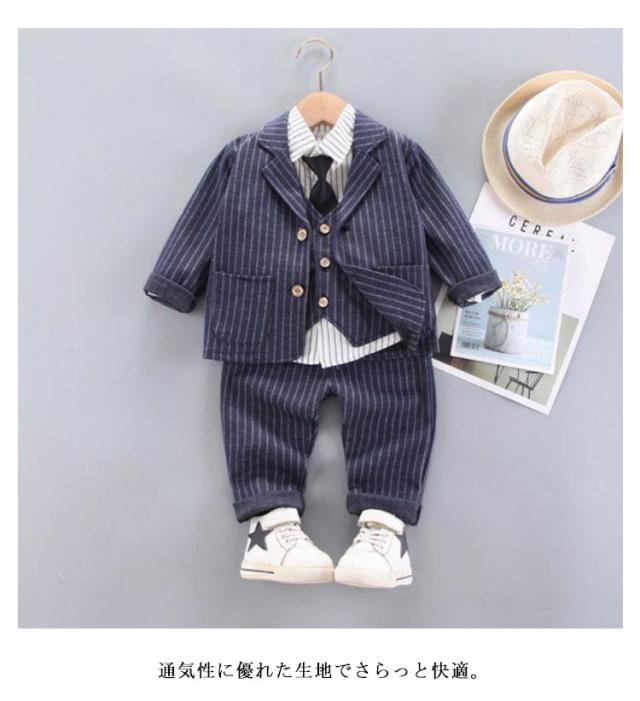 ベビー スーツ 男の子 4点セット フォーマル 子供 スーツ キッズ 赤ちゃん ネクタイ付き 入園式 こども 七五三 結婚式 おしゃれ ジャケット ズボン シャツ ベスト 保育園 73 80 90 100 110cm 送料無料