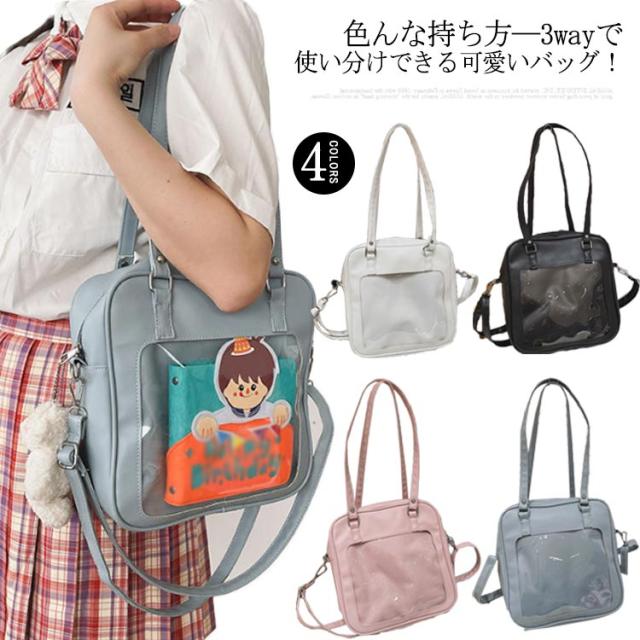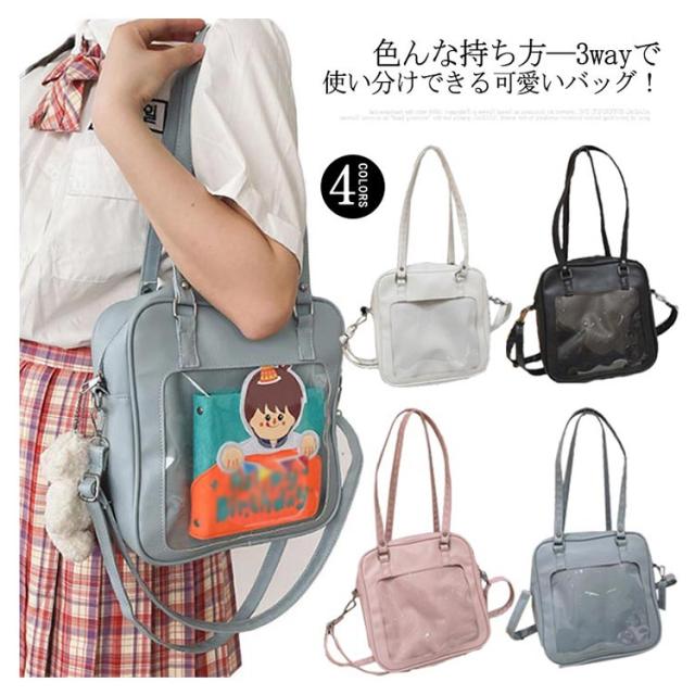 痛バッグ 痛ショルダーバッグ 痛バ 3way ビニールトートバッグ 魅せトート フェイクレザー 見せバッグ ぬいぐるみ ポーチ 斜めがけ 透明 ポシェット かばん デイバック 缶バッジ 大容量 イベント用
