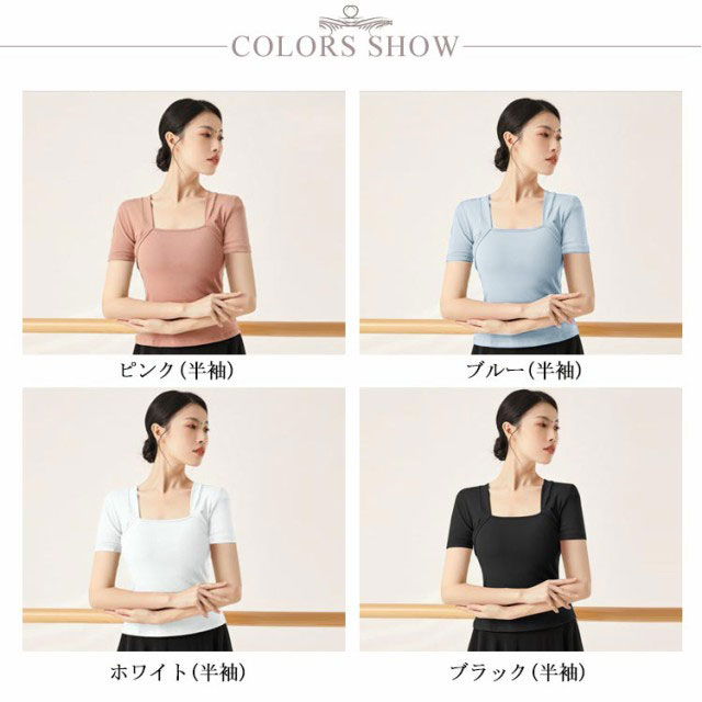 | 程よく鎖骨が覗くスクエアネックは女性らしく、華やかさを演出します。 スッキリしたフォルムでボトムを選ばない、様々な衣装と組み合せができる。 ボディはお肌に優しく通気性の良いストレッチコットン素材を使用。 バレエ用はもちろん、新体操、ヨガなどのレッスンウエアとしても人気。 | |