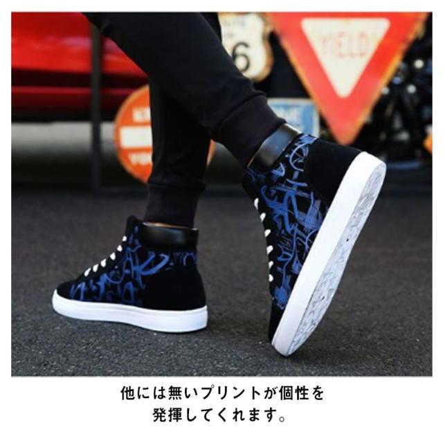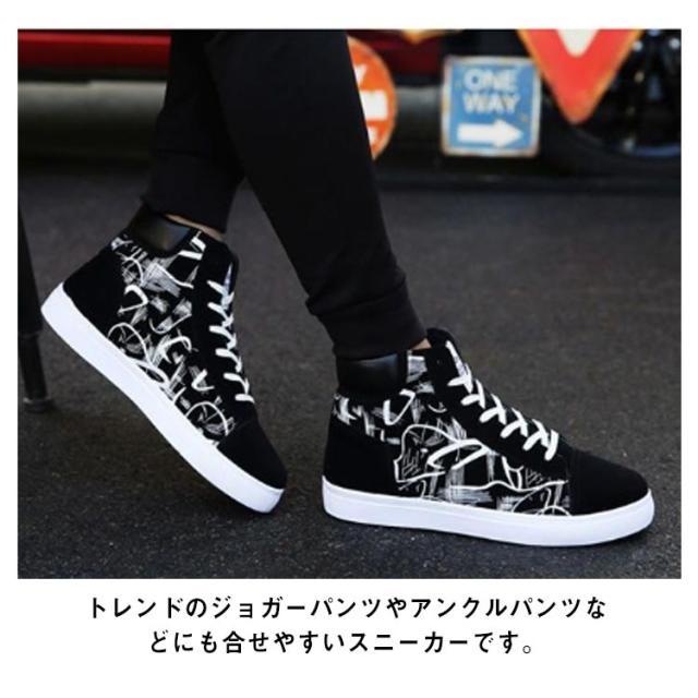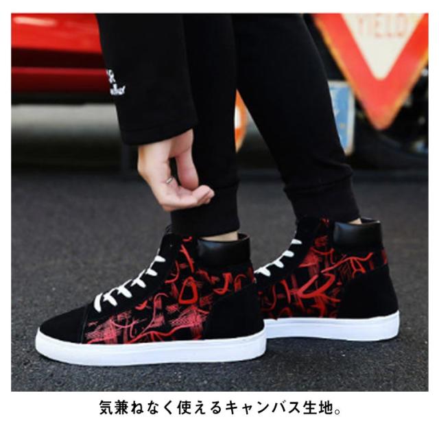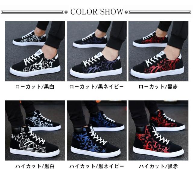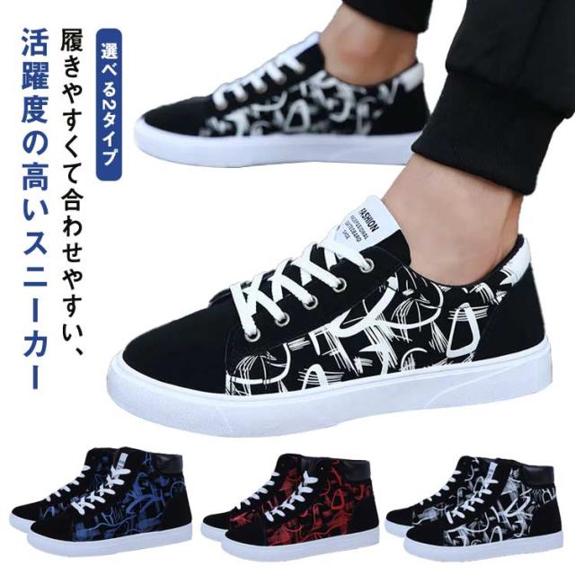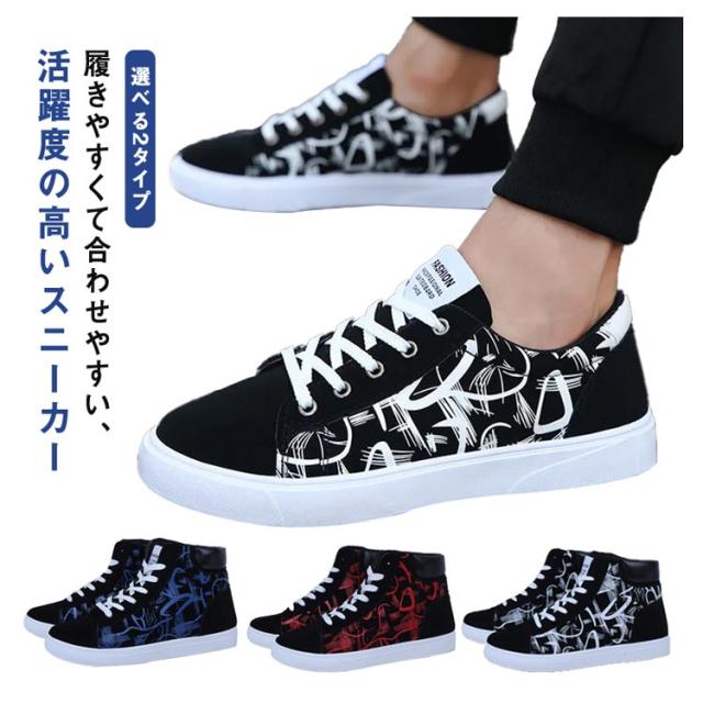 スニーカー メンズ レースアップ ローカット ハイカット キャンバススニーカー カジュアル おしゃれ 落書き柄 滑りにくい 履きやすい 男子 通学 メンズシューズ 春 選べる2タイプ 全3色