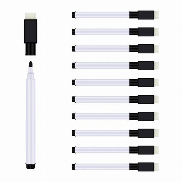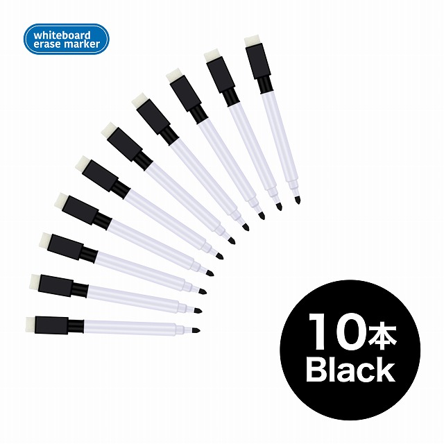 ホワイトボードマーカー 黒 10本セット 磁気 マグネット付 消しゴム イレーサー付ペン
