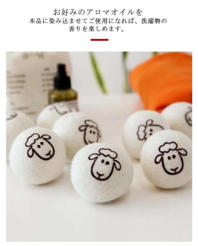 | 乾燥時間短縮で電気代もカット!乾燥機に衣類と一緒に入れるだけの羊毛を使用したドライヤーボール。 乾燥機内でウールのボールが動き回ることで衣類の間に隙間を作り、効率よく熱風をあてて乾かします。 また、ドライヤーボールが水分を吸収してくれるので、乾燥時間短縮につながっています。 やわらかなボールがバウンドすることで、ボールが繊維を優しくマッサージしてくれるので、衣類の表面をやわらかくさせ、ふんわりとした仕上がりになります。 衣類との絡まりを抑えるので衣類の洗いシワを抑えてくれます。 お好みのアロマオイルを本品に染み込ませてご使用になれば、洗濯物の香りを楽しめます。 | |