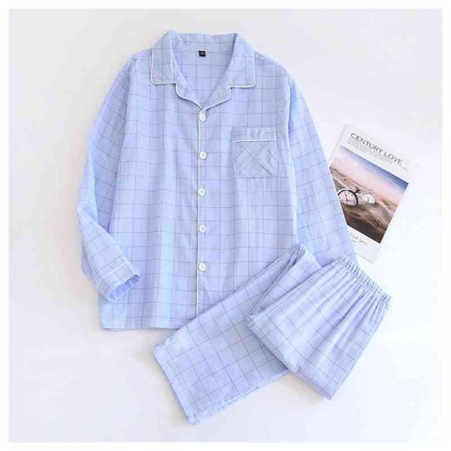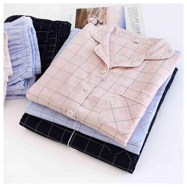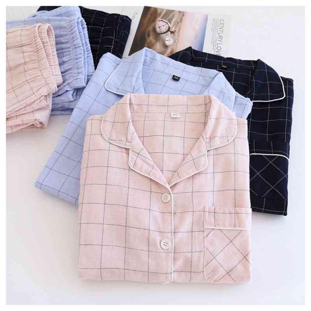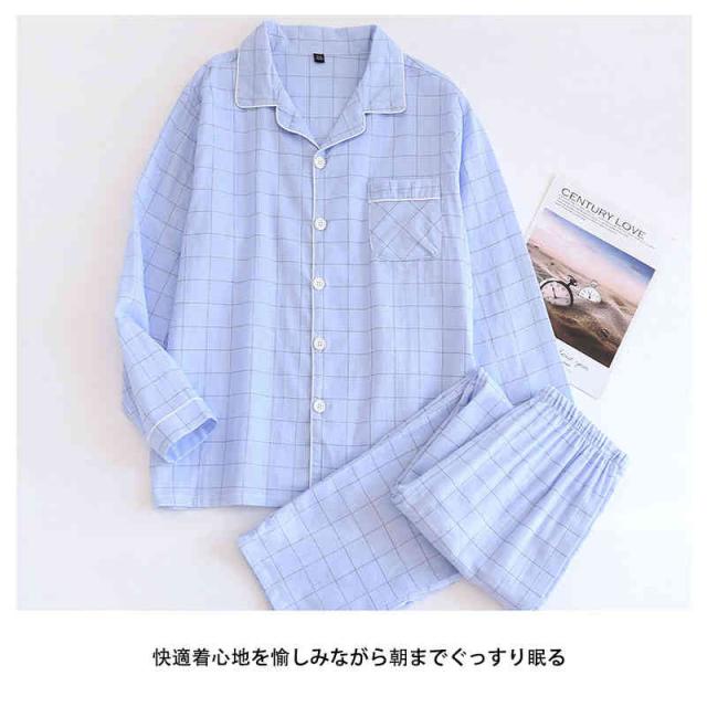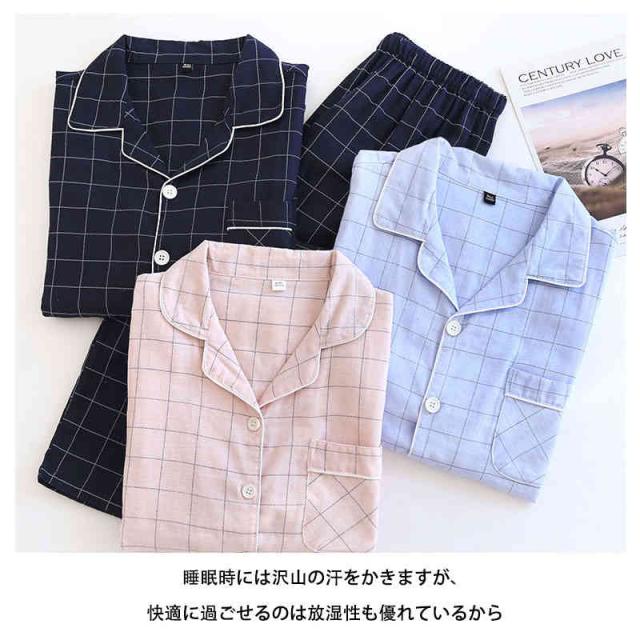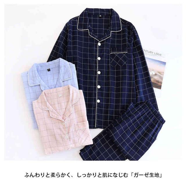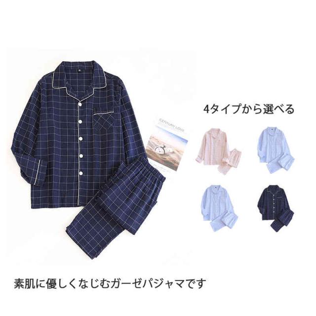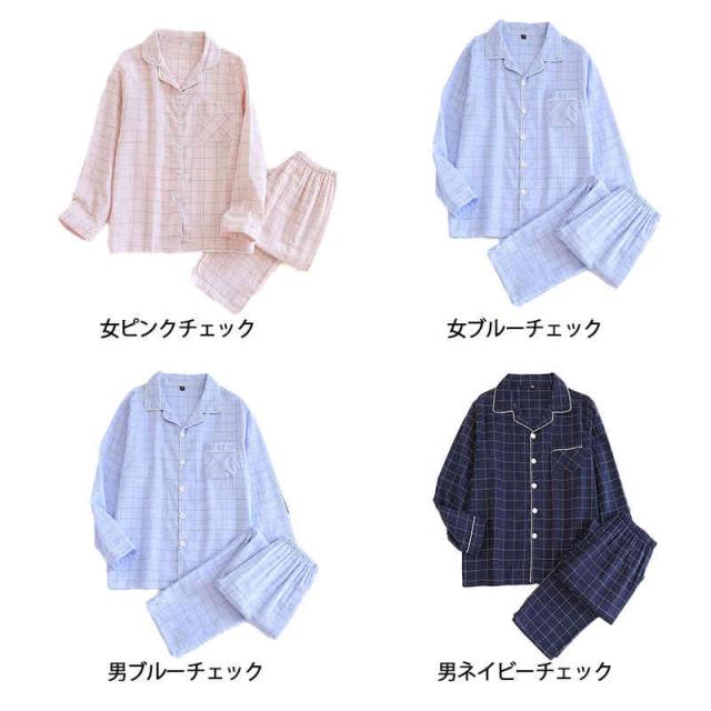 パジャマ ガーゼ 上下セット レディース メンズ ガーゼパジャマ 前開き 綿 長袖 2重ガーゼ ルームウェア チェック柄 寝間着 秋 冬 春 夏 おしゃれ 通気性 吸湿性 保温性 眠りサポート 快眠 2色 チクチクしない