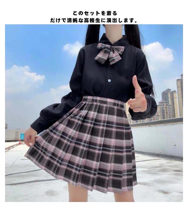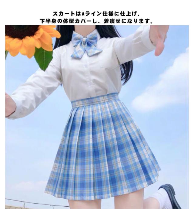 | チェック柄スカート+ワイシャツ+蝶結びは定番の3点セットです。 滑らかで光沢感のある質感と柔らかい肌触りが特徴。 このセットを着るだけで清純な高校生に演出します。 スカートはAライン仕様に仕上げ、下半身の体型カバーし、着痩せになります。 みんなと差が付くおしゃれなデザイン・学生制服にも、なんちゃって制服にもおすすめ。 年齢を選ばず、中学生 女子高生の制服にも、普段使いにもお使いいただけます! | |