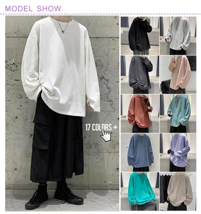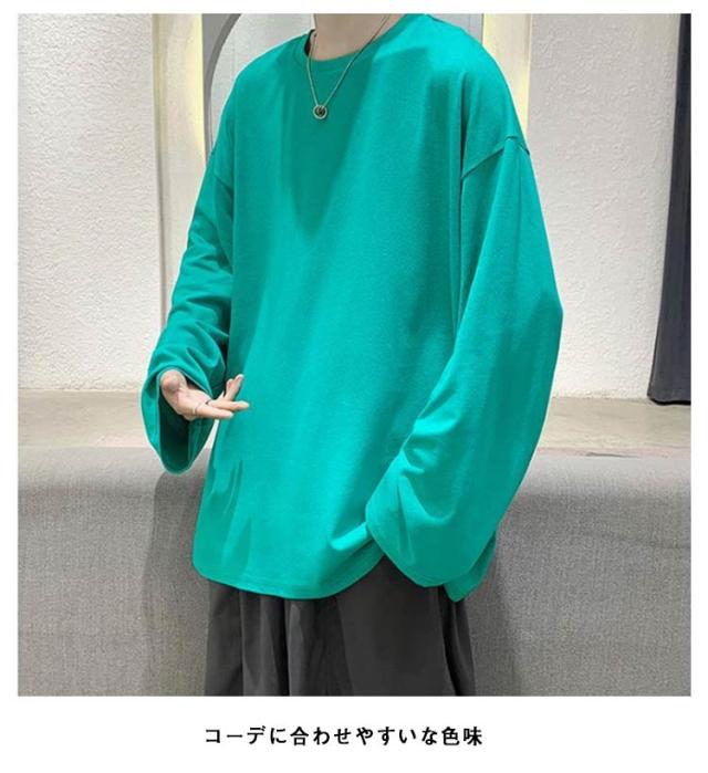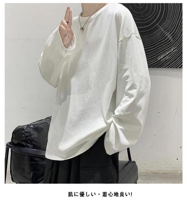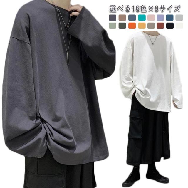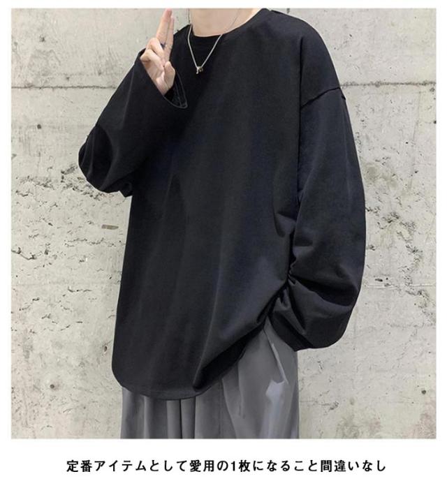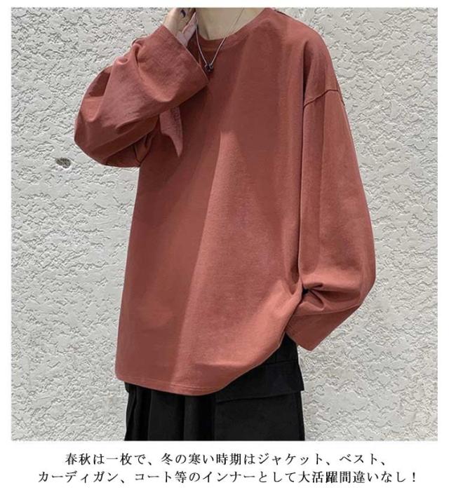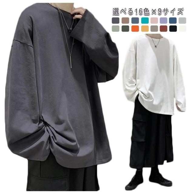 選べる16色×9サイズ カットソー メンズ 長袖 インナー 無地 シンプル トップス Tシャツ ゆったり 長袖カットソー レイヤード インナーシャツ 重ね着 インナートップス ロンT 大きいサイズ コットン 綿