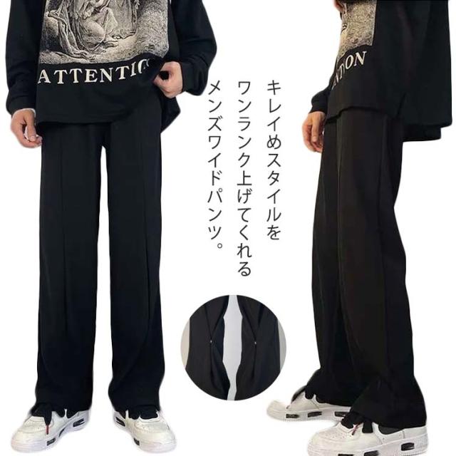 ワイドパンツ メンズ スラックス パンツ ボトムス メンズ ガウチョパンツ スーツ地 ワイド ストレッチ タック入り バックボタン 無地 とろみ パンツ モード系 送料無料 韓国 ファッション カジュアル トレンド レディース ユニセックス