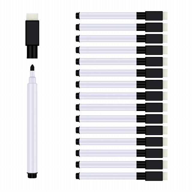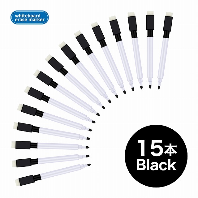 ホワイトボードマーカー 黒 15本セット 磁気 マグネット付 消しゴム イレーサー付ペン