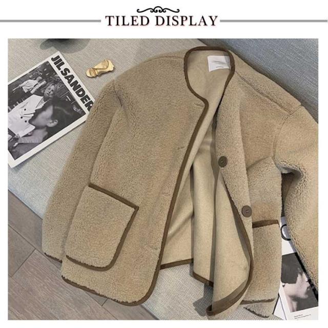 送料無料 ボアジャケット レディース アウター ボア ジャケット ショート丈 ノーカラー ファーコート 春秋冬 ふわふわ もこもこ 前開きボタン付き 暖か ボリューム ゆったり 毛布 ポケット付き 韓国風 ボアジャケット 送料無料