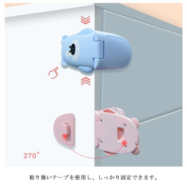 | 赤ちゃんの指挟み防止、いたずら対策・地震対策に♪ 片手で簡単に開け閉め出来ますが、赤ちゃんにとっては開けにくい仕組みになっています。 戸棚、ベビーゲート、本棚、デスク周りの引き出し等に取り付けておくだけで事故を防げます。 | |