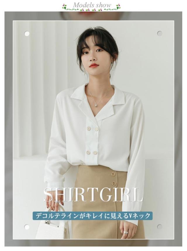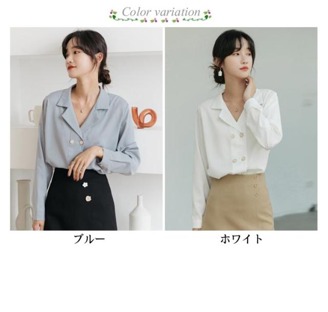 送料無料 Vネック ブラウス 長袖 シャツ レディース トップス とろみシャツ ダブルボタン シフォン ブラウス 開襟シャツ フォーマル ゆったり 大人 夏服 春服 秋服 シンプル オフィス きれいめ かわいい ビジネス 通勤 OL カジュアル おしゃれ 着痩せ