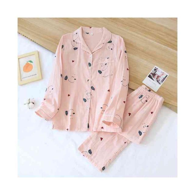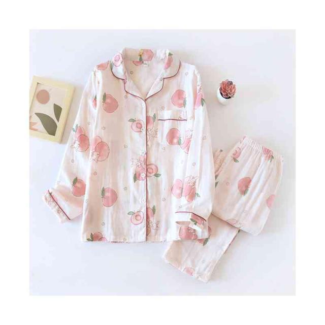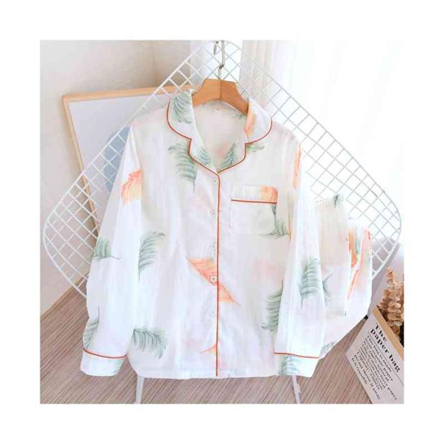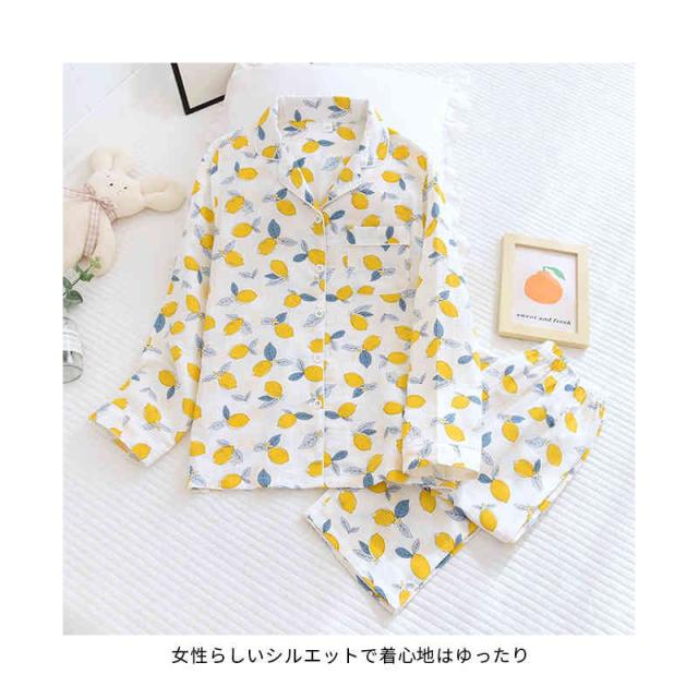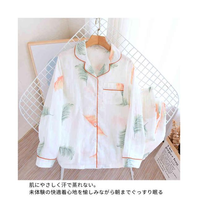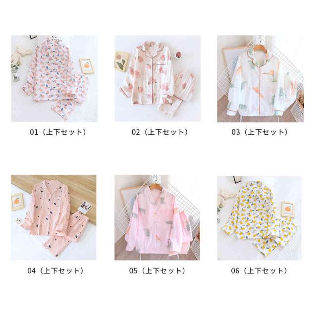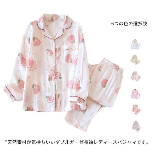 パジャマ 上下セット レディース ダブルガーゼ 綿 長袖 二重ガーゼ 前開き ルームウェア テーラー襟 長ズボン ロング丈 マタニティ 部屋着 花柄 薄手 寝巻き 寝間着 可愛い 涼しい ふんわり 柔らかい 春 夏 秋 ナイトウェア チクチクしない