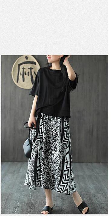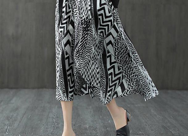 ロング スカート レディース Aライン フレアスカート ミモレ丈 ひざ丈 ボトムス ウエストゴム 幾何学柄 マルチカラー モノトーン 幾何学模様 切り替え スカート 無地 ふんわり 大柄 配色 デザインスカート 大きいサイズ ゆったり 送料無料