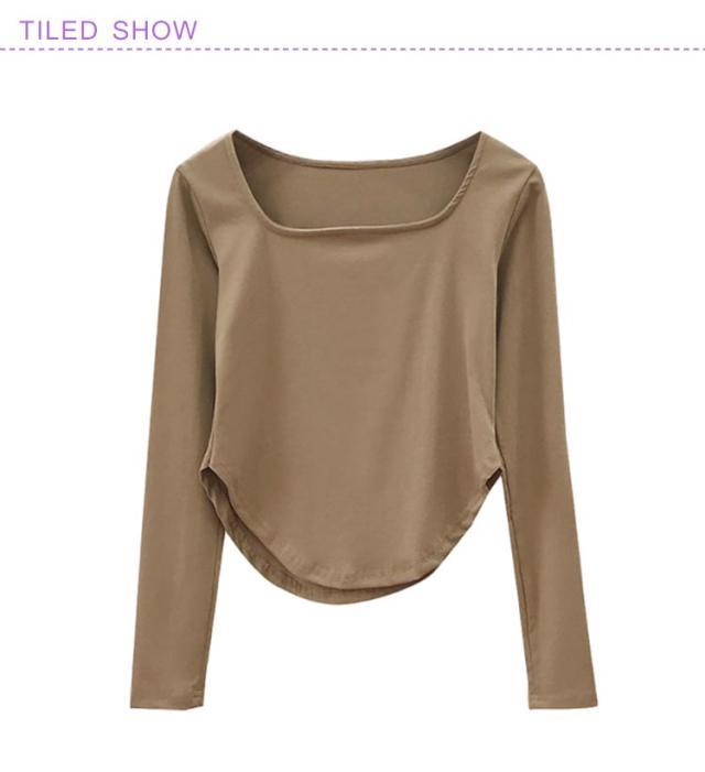 ラウンド裾tシャツ Uネックtシャツ ショート丈 tシャツ カットソー トップス アシメトリー 無地 ヨガウエア ジムウエア ダンスウエア レディース 脚長効果 春 秋 送料無料