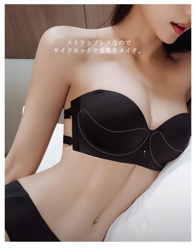 | 肩や胸元のあいたドレスに絶対おすすめ!着ける瞬間に谷間アップ!トラップレスブラ。 ストラップレスなのでサイドホックで美乳をメイク。 ワイヤー入り&立体カップで綺麗なシルエットに。 カップ部分は柔らか素材で通気性があり汗ばむ季節も快適♪ 2重のバックベルトでホールドアップ! ストラップレスは肩や背中開いた服やドレスの時だけでなく肩紐の食い込みや肩こりのお悩みも解決できる! 首紐もついているので、いろんなシーンにも合わせる! ドレススタイルの他、オフショルや夏のファッションにも大活躍間違いなし! | |