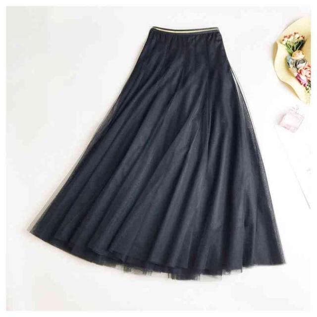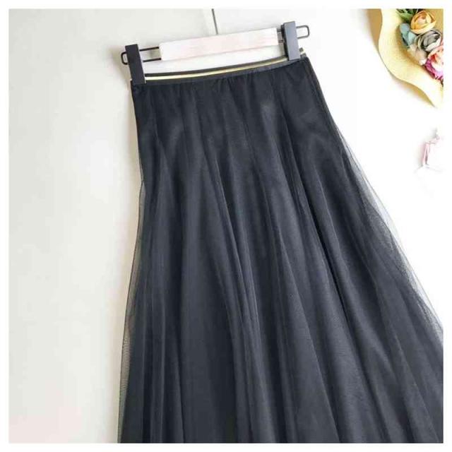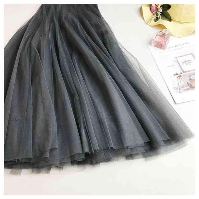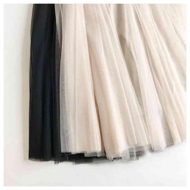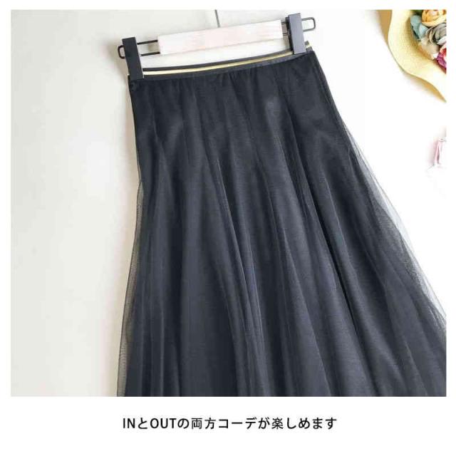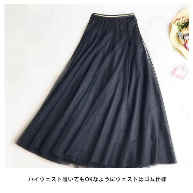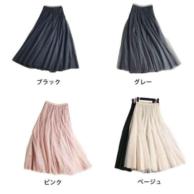チュールスカート ロングスカート フレアスカート プリーツスカート ウエストゴム 透け感 重ねチュール 裏地あり 体型カバー レーディス Aライン ふんわりチュール アンクル丈 春 ボトムス きれいめ ゆったり