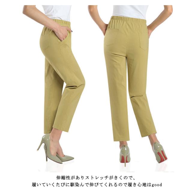 ロングパンツ レディース テーパードパンツ ストレッチパンツ イージーパンツ ハイウエスト ウエストゴム リラックス 部屋着 ルームウエア オフィス 通勤 美脚 着痩せ エレガント 大きいサイズ 母