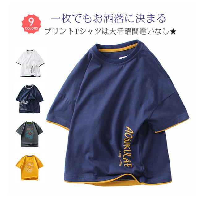 送料無料 キッズ 子供服 Tシャツ 半袖 男の子 ボーイズ プリントtシャツ ティーシャツ 半袖Tシャツ ジュニア 韓国子供服 クルーネック 薄手 綿100% コットン 120cm 130cm 140cm 150cm 160cm