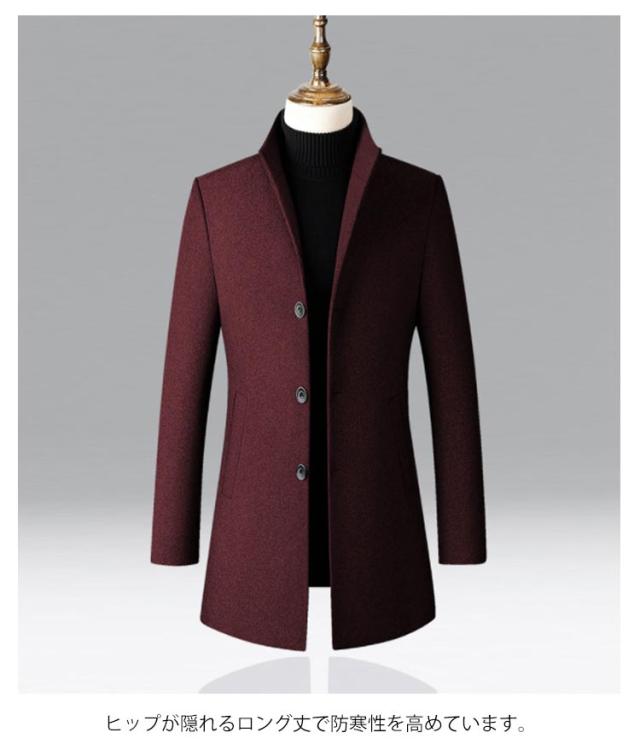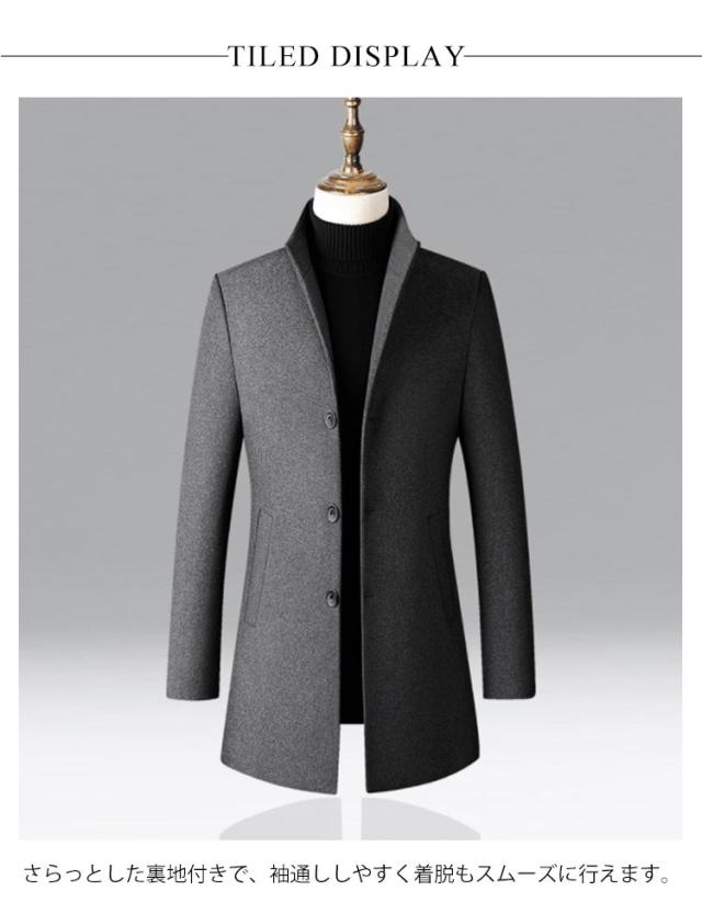 チェスターコート メンズ スタンドカラー コート ビジネスコート 黒 ミドル丈 秋 春 メンズ アウター メルトン 裏地付き スリム フィット スプリングコート フォーマル 通勤 カジュアル 冠婚葬祭 ブラック 40代 50代