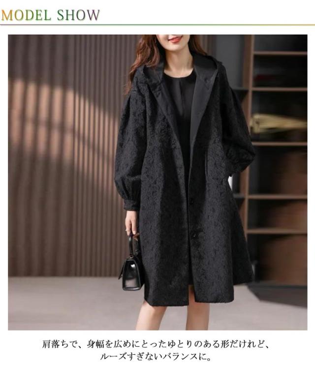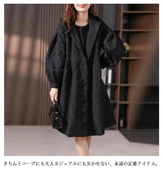 トレンチコート レディース スプリングコート アウター ロングコート ジャガード エンボス加工 Aライン 長袖 花柄 コート アウター 羽織 ミディアム丈 きれいめ 上品 着回し 大人カジュアル 軽量 体型カバー きれいめ おしゃれ 通勤