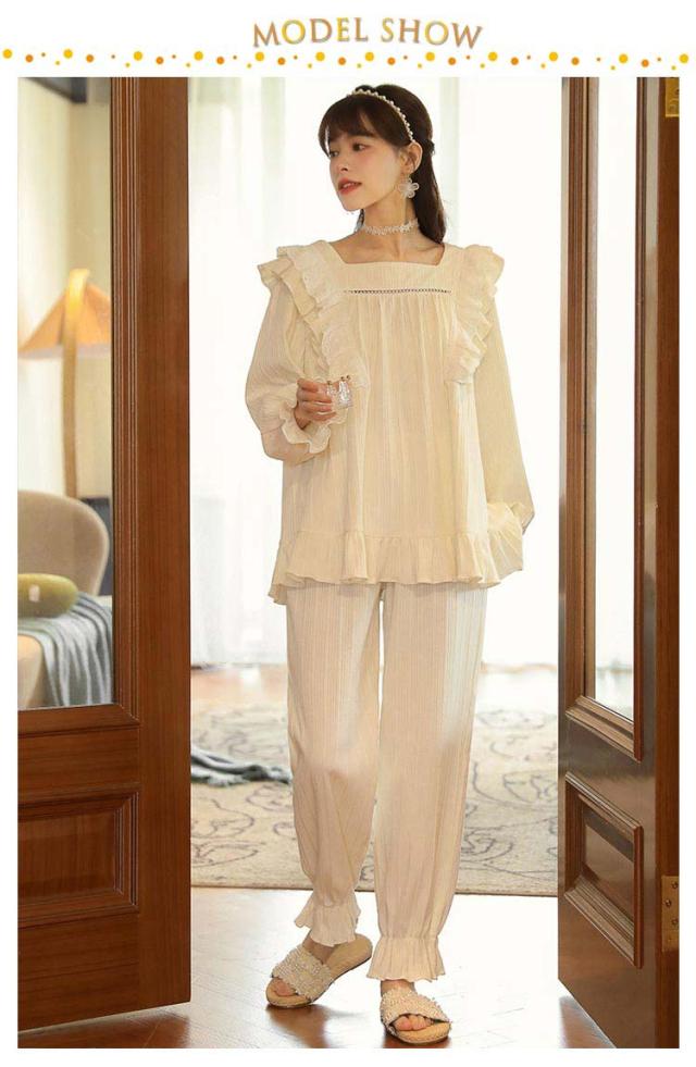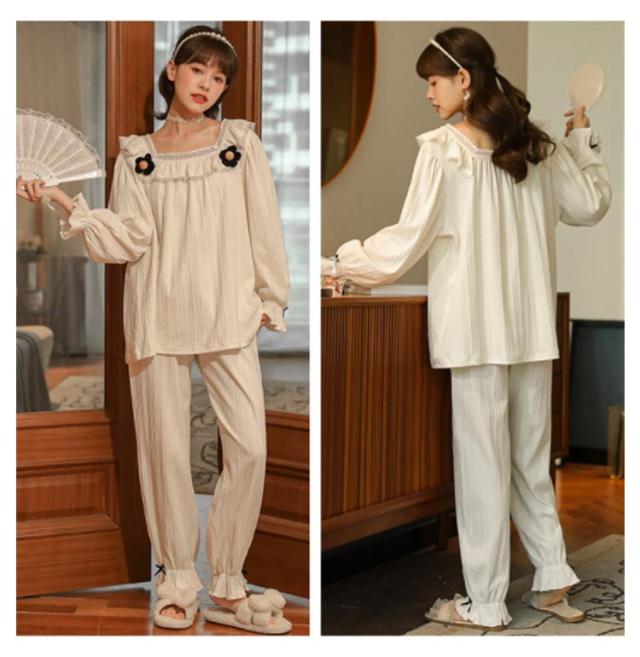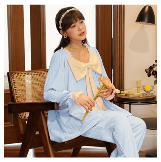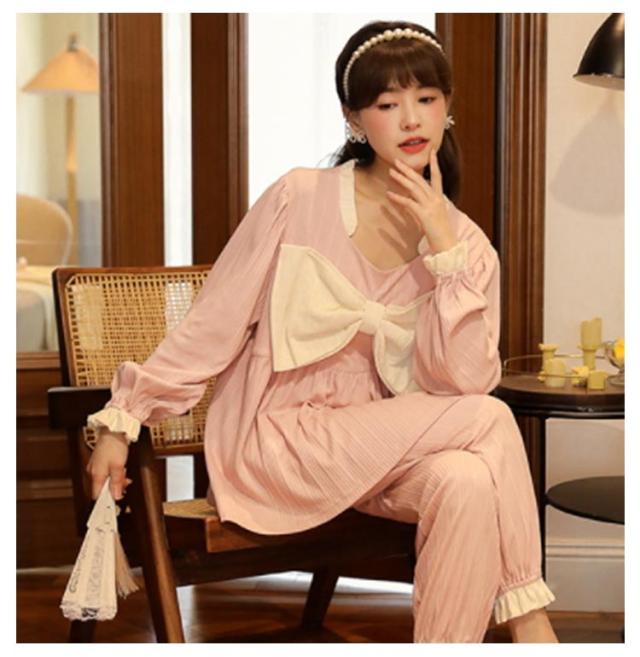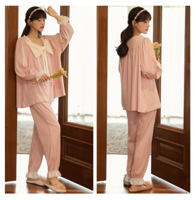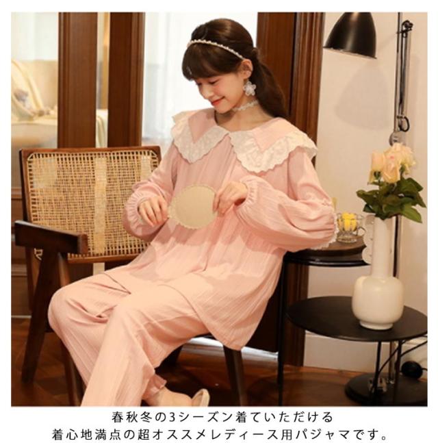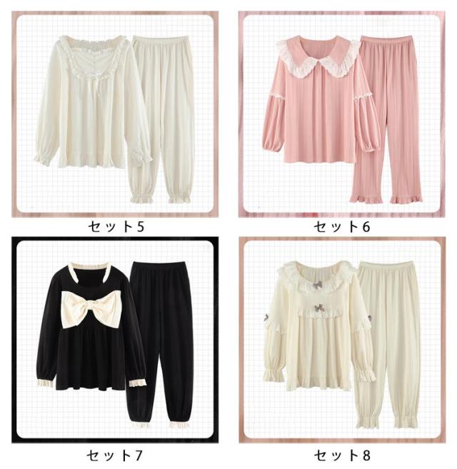 パジャマ 上下セット レディース 長袖 ルームウェア 2点セット トップス パンツ ナイトウェア 部屋着 春 夏 秋 高校生 中学生 姫系 リボン お泊り 旅行 着痩せ 無地 かわいい 大きいサイズ