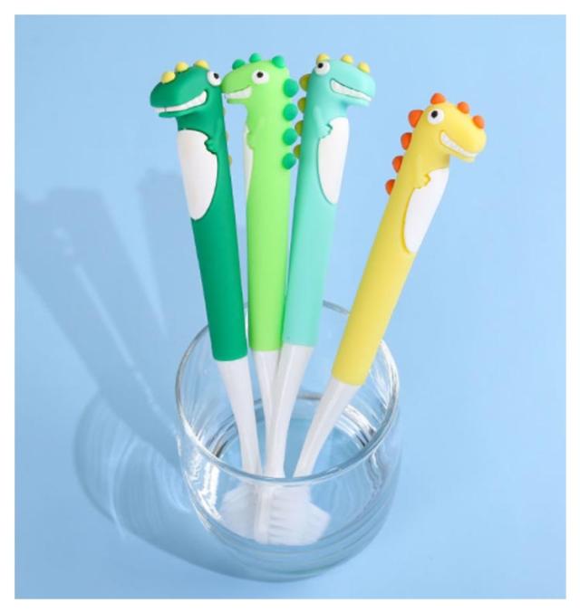 | 歯ブラシ嫌いや、ブラッシングを痛がるお子様でも、痛くなく歯磨きができます。 毛が細くてやわらかいので、萌出が始まった直後からお使いいただけます。 はじめて使う歯ブラシで痛い思いをしてしまうと、その後も歯ブラシを嫌がる傾向がありますので、ファーストブラシにはこれをお薦めいたします。 柔らかく刺激が少ない毛を使用しているので、触覚過敏、感覚過敏のお子様にもお薦めいたします。 | |