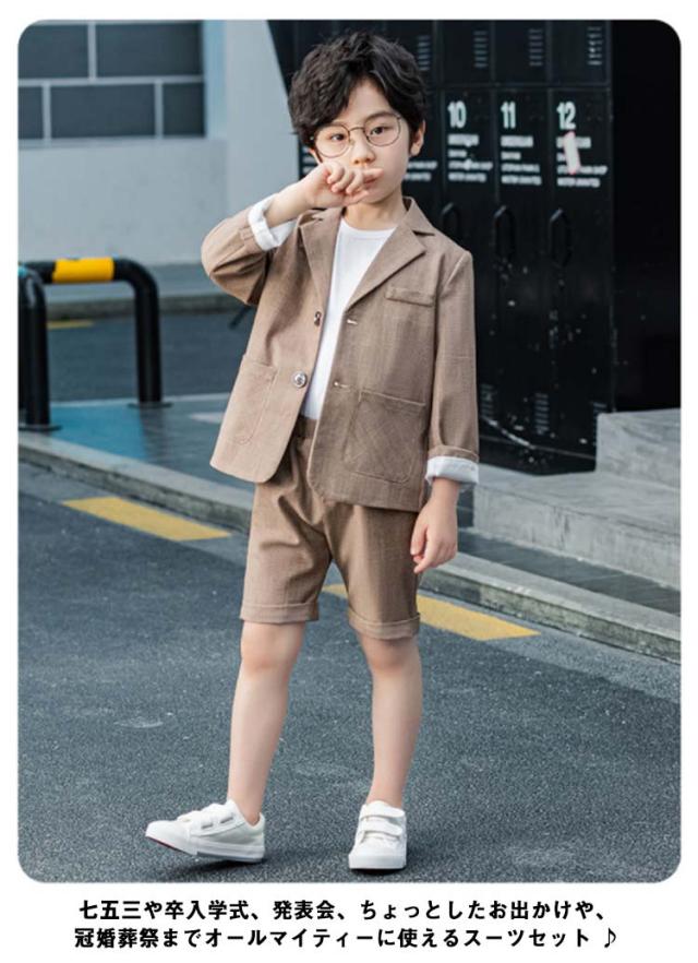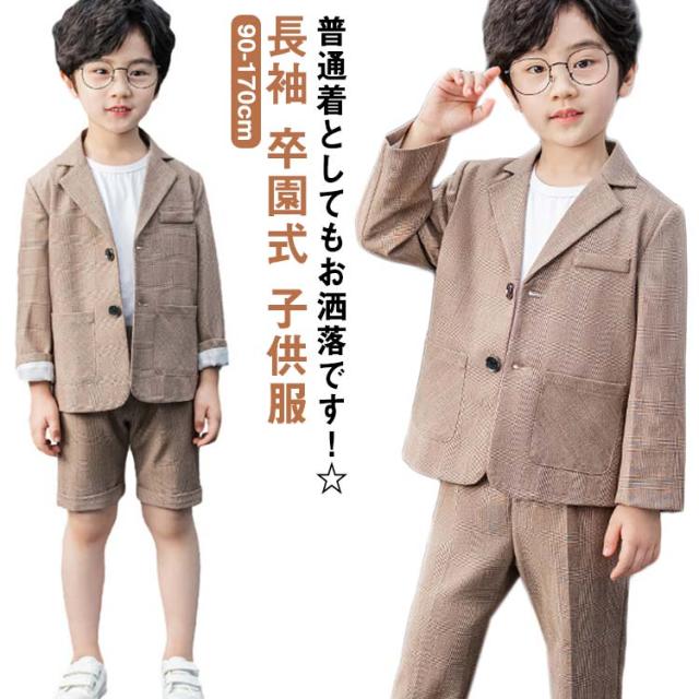 卒業式 入学式 スーツ 男の子 半ズボン ジュニア 大きいサイズ 小学生 セットアップ ハーフパンツ フォーマル スーツ 長袖 卒園式 子供服 スーツ ジャケット ロングパンツ ブラウン 子供服 秋 おしゃれ 無地 発表会 結婚式 90 100 110 120 130 140 150 160 170 送料無料