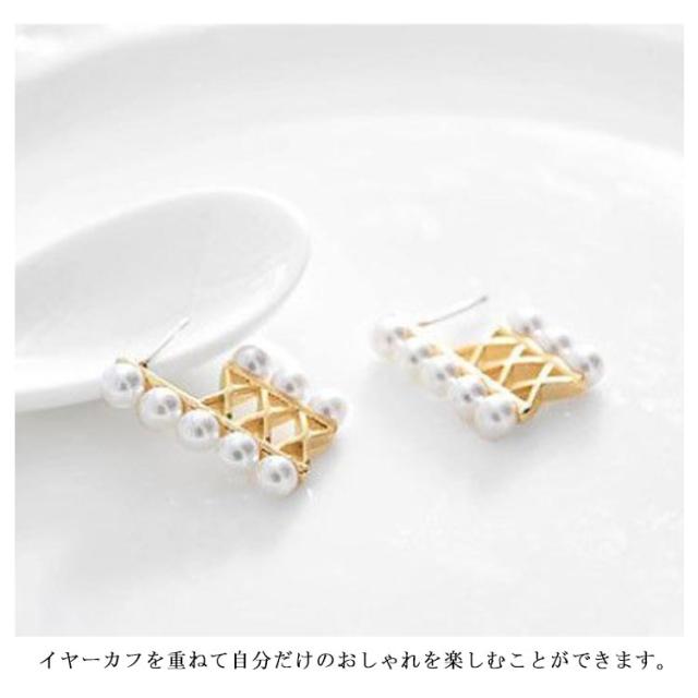 イヤーカフ パール ライン 金属アレルギー対応 レディース 片耳用 上品 大人可愛い プレゼント 重ね付け レディース イヤカフ ピアス イヤーカフス ノンホール セット シルバー ゴールド 小さめ ウェアリング 韓国